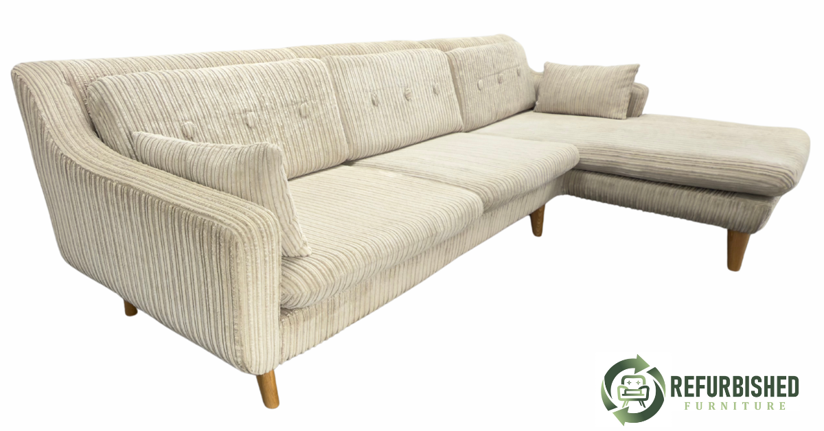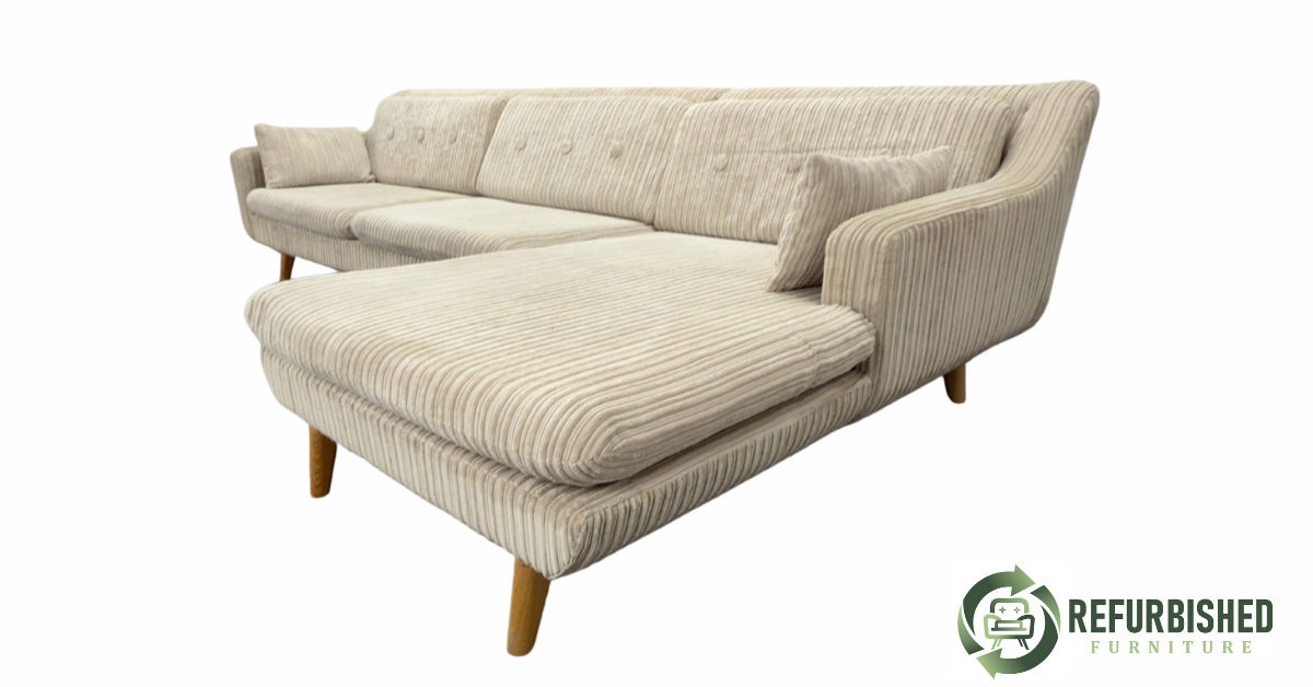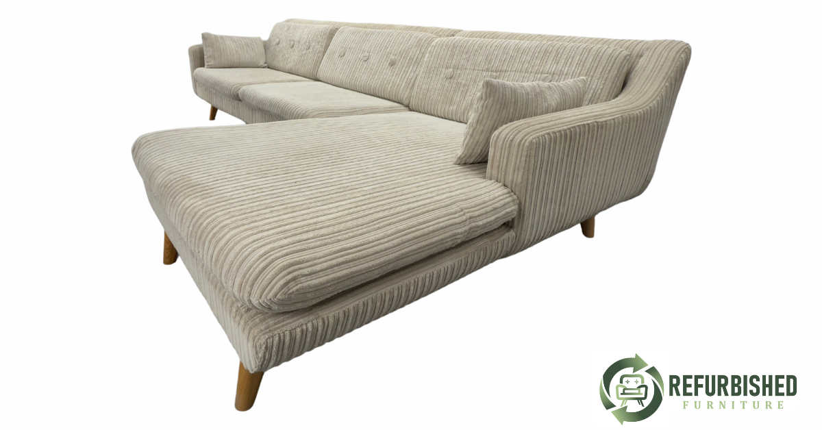 Wil je deze beige 4-zits hoekbank in ribstof zelf ervaren?