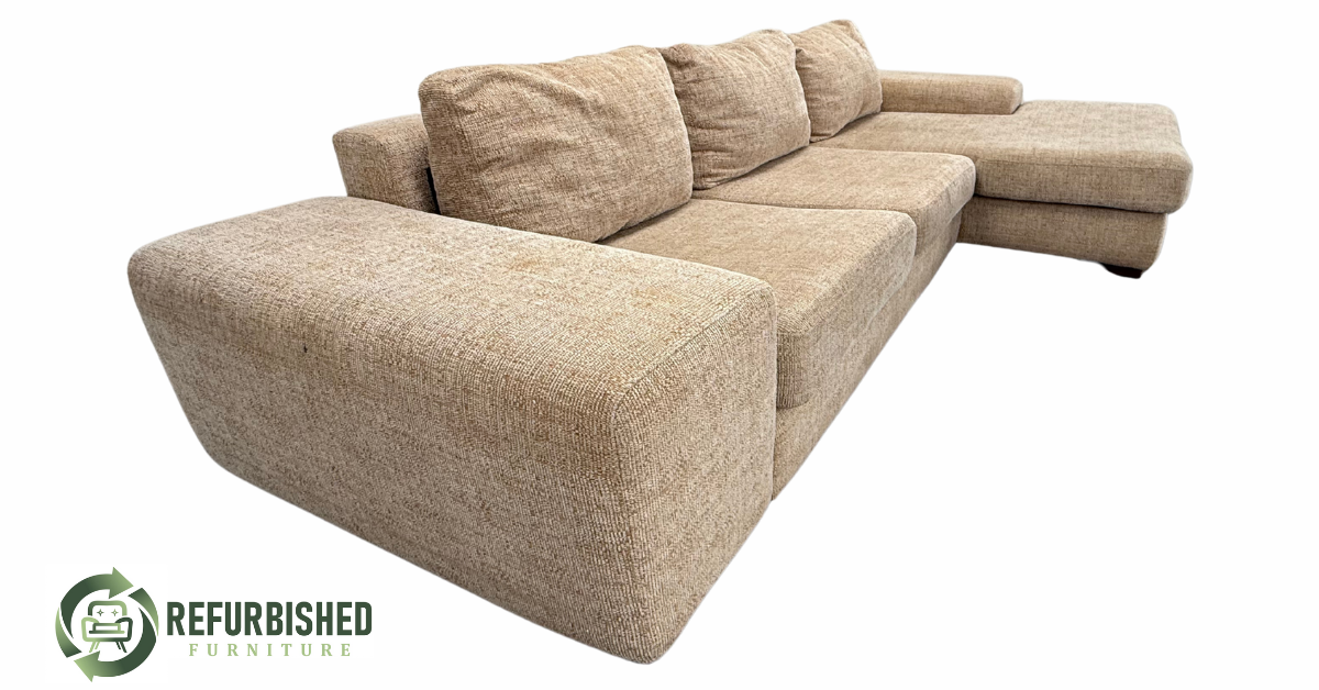Refurbished 4-zits hoekbank beige gemêleerd inclusief 6 maanden garantie!