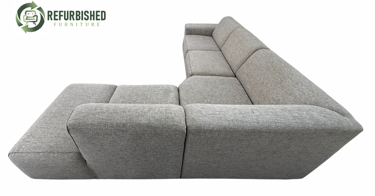 De strakke lijnen en tijdloze grijze kleur maken deze hoekbank een stijlvolle toevoeging aan ieder interieur.