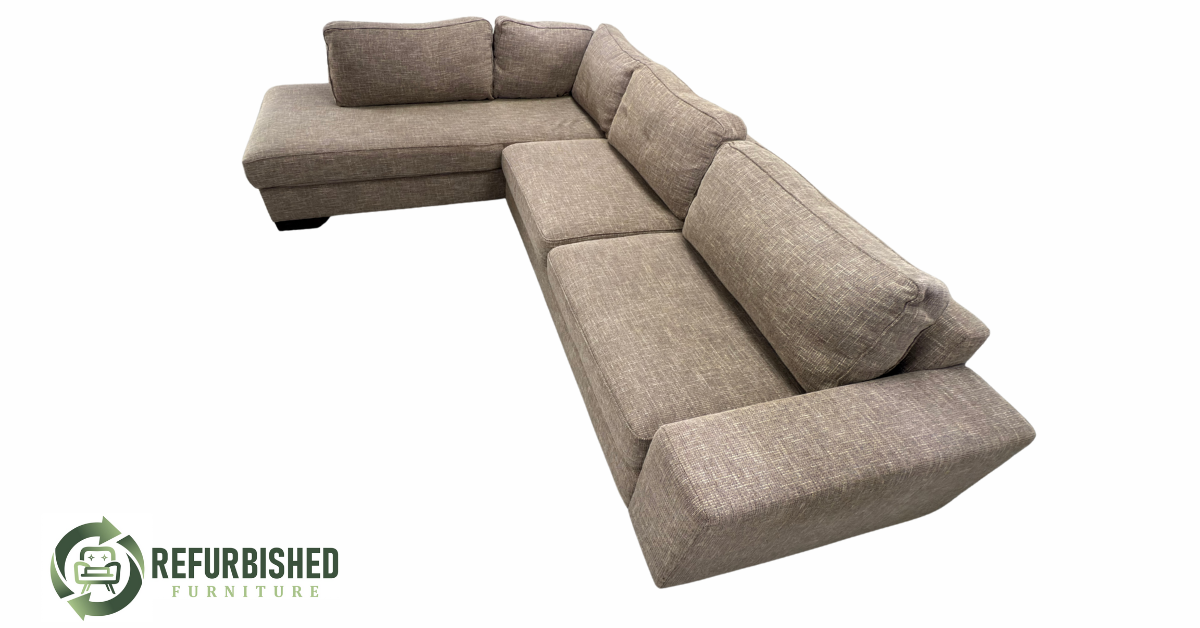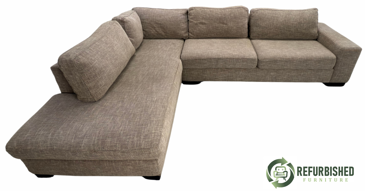 Deze lichtbruine gemêleerde hoekbank straalt warmte en comfort uit. De ruime opstelling, zachte gemêleerde stof en moderne look maken deze bank tot een perfecte toevoeging aan elke woonkamer – van minimalistisch tot landelijk gezellig.