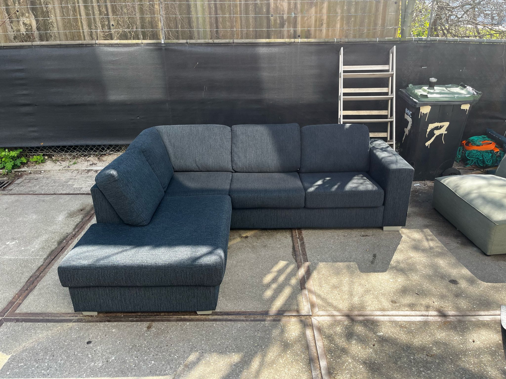 Wil je deze donkerblauwe 4-zits hoekbank zelf ervaren?